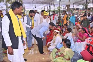 आदिवासी विकास एवं कृषि मंत्री श्री रामविचार नेताम ने नव दंपत्तियों को आशीर्वाद देते हुए उनके सुखद एवं समृद्ध वैवाहिक जीवन की कामना की