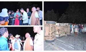 हादसा इतना तेज़ था कि वाहन सड़क किनारे पलट गया, जिसके बाद इलाके में अफरा-तफरी का माहौल बन गया।