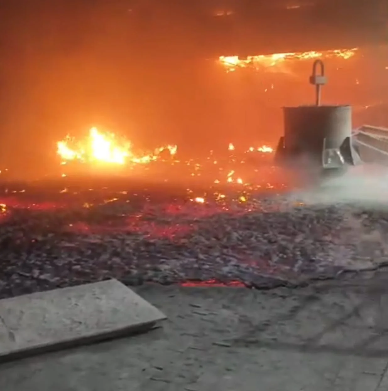 Breaking News: A massive fire has broken out at SMS 2 of Bhilai Steel Plant... Hot metal has spilled onto the ground... Significant damage is feared...