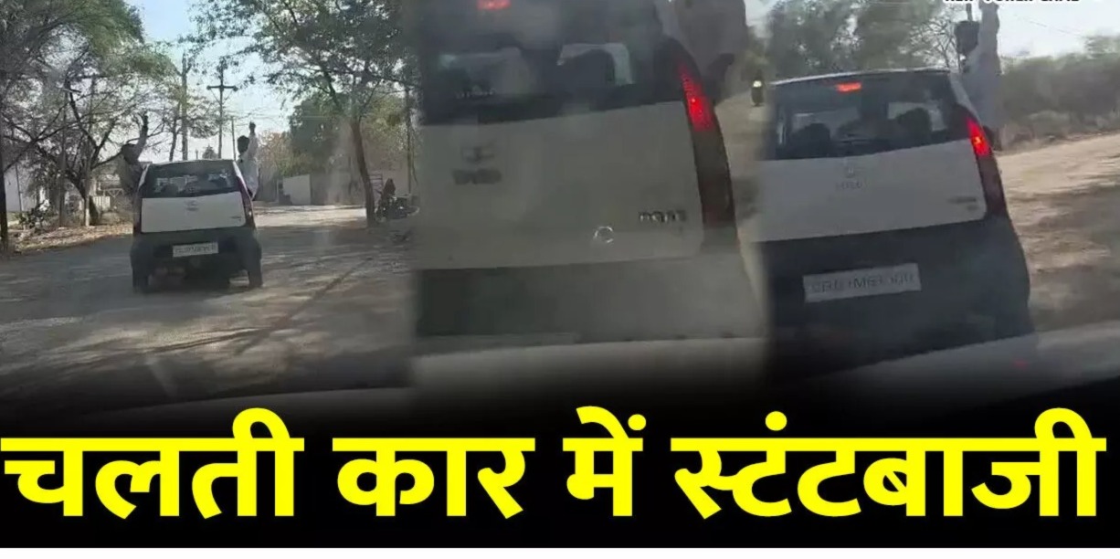 CG – मौत को न्योता : चलती कार में स्टंटबाजी, खिड़की से बाहर निकलकर जानलेवा स्टंट करते दिखे युवक, देखें वीडियो वायरल..