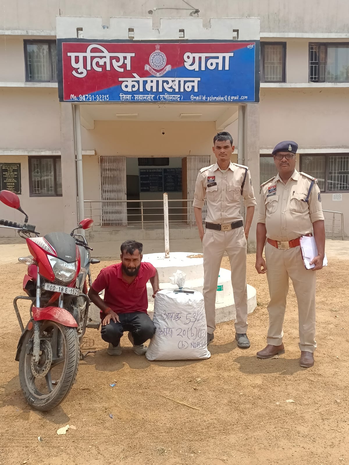 दिनांक 21.04.2026 को वाहन चेकिंग के दौरान जरिये मुखबिर सूचना मिला कि एक लाल काला रंग की ग्लैमर मोटर सायकल क्रमांक ओडी 18 ई 1525 में एक व्यक्ति अवैध रूप से मादक पदार्थ गांजा लेकर उडिसा से छत्तीसगढ की ओर आ रहे हैं सूचक के बताये अनुसार एक व्यक्ति मोटर सायकल में खरियार रोड की ओर से आते दिखा,कुछ दुर से उसे रूकने का ईशारा करने पर वह अचानक अपनी वाहन को तेज गति से भागने लगा पुलिस टीम ने भी उक्त मोटर सायकल का पीछा करते हुए ग्राम सुवरमाल पेट्रोल पंप के पास वाहन सवार को पकड़ा।