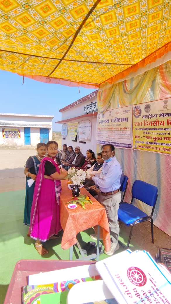 मस्तूरी//मल्हार स्थित बद्री प्रसाद देवांगन मध्य नगरीय उच्चतर माध्यमिक विद्यालय मल्हार के एनएसएस इकाई का सात दिवसीय विशेष शिविर गोद ग्राम जुनवानी में लगा है जहाँ बुधवार चतुर्थ दिवस पर 81 ग्रामीणों तथा 34 छात्रों का स्वास्थ्य परीक्षण मल्हार प्राथमिक स्वास्थ्य केंद्र मल्हार के आयुष चिकित्सा अधिकारी और उनके टीम के द्वारा किया गया प्राथमिक स्वास्थ्य केन्द्र मल्हार के आयुष चिकित्सा अधिकारी हर्ष देव नापित के मुख्य आतिथ्य और अश्वनी कश्यप व उनके स्टाफ तथा देव हेल्थ केयर के डायरेक्टर साधना नापित स्त्री रोग चिकित्सक के विशिष्ठ आतिथ्य में किया गया,चतुर्थ दिवस के प्रथम सेशन का विषय “आज का वातावरण और हमारा स्वास्थ्य पर जानकारी डॉ,हर्ष देव द्वारा दिया गया,स्त्री रोग चकित्सक डॉ साधना नापित द्वारा स्त्री रोग और बचाव पर जानकारी दिया गया साथ ही विद्यालय परिसर पर नारियल,चार ,जामुन और सो दार पौधे रोपे गए,साथ ही ट्री गार्ड से सुरक्षित किया गया,दूसरे सेशन पर ग्रामीणों का स्वास्थ्य परीक्षण किया गया। यह सात दिवसीय विशेष शिविर एनएसएस कार्यक्रम समन्वयक डॉ मनोज सिन्हा और जिला संगठक डॉ कांति अंचल मैम के मार्ग दर्शन में सम्पन्न हुआ, तीसरे सेशन पर विशिष्ठ अतिथि के रूप में सुनीता कुर्रे (कार्यक्रम अधिकारी संत गुरु घासीदास कालेज पचपेड़ी अपने वरिष्ठ स्वयं सेवको के साथ उपस्थित रहीं,अपने उद्दबोधन पश्चात कुछ पौधे रोपे और स्वनिर्मित ट्री गार्ड की सराहना भी किए जो हमारे बच्चो के लिए आशीर्वाद रहा साथ ही विद्यालय के प्राचार्य प्रदीप कुमार वैष्णव,पूर्व शिक्षक बैसाखू रजक,और विद्यालय स्टाफ उपस्थित रहे,कार्यक्रम की समाप्ति पर कार्यक्रम अधिकारी करुणेश कुमार नापित ने अतिथियों का आभार व्यक्त किया।