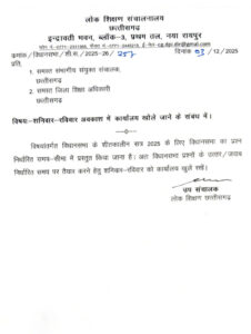 CG ब्रेकिंग : डीपीआई ने जारी किया आदेश, इस दिन नहीं खुले रहेंगे JD-DEO कार्यालय…..
