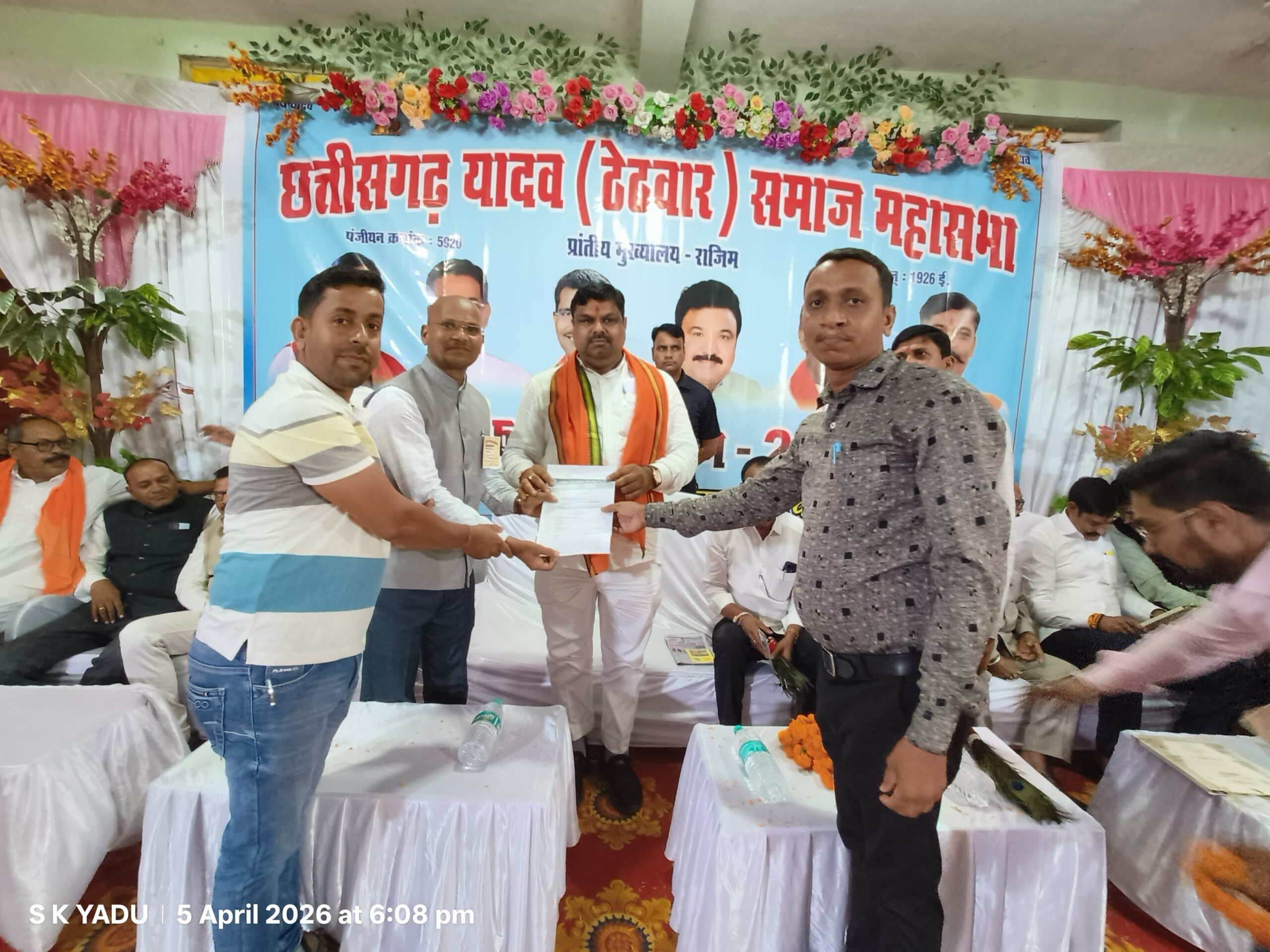 राजिम। आज राजिम में यादव ठेठवार महासभा द्वारा आयोजित वार्षिक अधिवेशन का भव्य आयोजन किया गया, जिसमें छत्तीसगढ़ शासन के माननीय शिक्षा मंत्री श्री गजेन्द्र यादव का आगमन हुआ। उनके आगमन पर समाज के लोगों द्वारा आत्मीय स्वागत किया गया। इस अवसर पर बड़ी संख्या में समाज के पदाधिकारी, प्रबुद्धजन एवं स्थानीय नागरिक उपस्थित रहे, जिससे कार्यक्रम का वातावरण अत्यंत उत्साहपूर्ण एवं गरिमामय बना रहा।