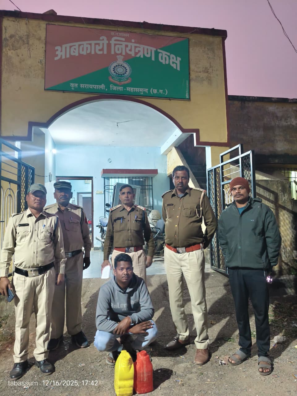 महासमुंद//कलेक्टर विनय कुमार लंगेह के मार्गदर्शन में आबकारी विभाग द्वारा अवैध मदिरा निर्माण और तस्करी के विरुद्ध लगातार अभियान चलाया जा रहा है। इसी क्रम में सरायपाली क्षेत्र में 16 दिसम्बर को संयुक्त टीम ने कार्रवाई करते हुए प्रकरण दर्ज किए तथा 7 लीटर हाथ भट्टी महुआ शराब और 200 किलोग्राम लाहन जप्त किया। 16 दिसम्बर को कार्रवाई के दौरान सरायपाली वृत्त के बाराडोली में आरोपी लक्ष्मण सिदार पिता दिलीप सिदार के विरुद्ध आबकारी एक्ट की धाराओं 34(1)(क)(च), 34(2) एवं 59(क) के तहत प्रकरण कायम किया गया। टीम ने मौके से 7 लीटर हाथभट्टी महुआ शराब कीमत 1400 रु तथा 200 किलोग्राम महुआ लाहान कीमत 10000 बरामद किया। कार्रवाई में सराईपाली वृत्त के आबकारी उपनिरीक्षक मिर्ज़ा जफ़र बेग के साथ साकरा के उपनिरीक्षक हृदय कुमार तिरपुडे और अन्य स्टाफ शामिल थे।