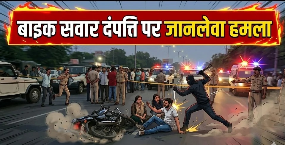 सरगुजा जिले के अंधला में घर लौट रहे बाइक सवार दंपती पर चार लोगों ने प्राण घातक हमला कर दिया। हमलावरों ने दोनों की डंडें व राड से बेदम पिटाई की, बाइक में भी जमकर तोड़फोड़ कर दी। दोनों घायलों को लखनपुर सामुदायिक स्वास्थ्य केंद्र लाया गया। गंभीर हालत पत्नी को चिकित्सकों ने इलाज के लिए रायपुर रेफर कर दिया था। रायपुर ले जाते समय रास्ते में उसकी मौत हो गई। पति की हालत भी बेहद गंभीर बनी हुई है, अंबिकापुर अस्पताल में उनका इलाज चल रहा है। मामला लखनपुर थाना क्षेत्र का है।