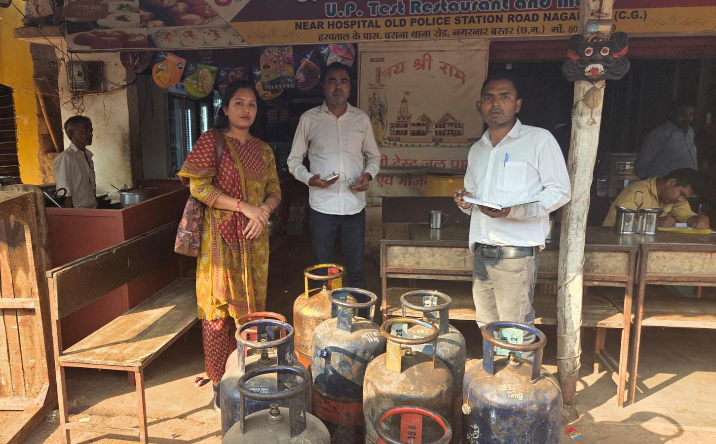 जांच टीम ने नगरनार क्षेत्र में भी औचक निरीक्षण में यूपी टेस्ट भोजनालय से 02 घरेलू गैस सिलेंडर जप्त किए गए। इसके साथ ही शुभम होटल से भी 02 नग घरेलू गैस सिलेंडर बरामद कर उन्हें विभागीय कब्जे में लिया गया। इस पूरी कार्रवाई को सफलतापूर्वक संपन्न करने में सहायक खाद्य अधिकारी दिव्या रानी के नेतृत्व में खाद्य निरीक्षक शेख अब्दुल कादिर, श्री उमेश चौधरी, श्री हेमंत ब्रह्मभट्ट, तोरण नेताम और श्रीमती पायल वर्मा ने सक्रिय भूमिका निभाई। विभाग ने कहा है कि घरेलू गैस का व्यावसायिक उपयोग नियमों का उल्लंघन है और भविष्य में भी इस तरह की औचक कार्रवाई जारी रहेगी।