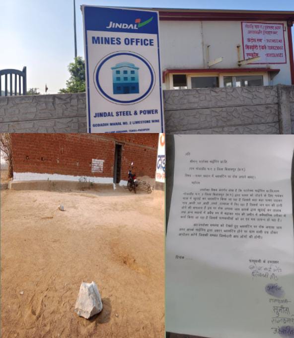 वो इनकी लापरवाही का शिकार ना हो जाए किसी दिन बड़ी अनहोनी ना घट जाए इनकी ब्लास्टिंग से बड़े बड़े पत्थर के टुकड़े रिहाएसी एरिया में जा कर गिर रहा हैँ जिसको लेकर अब ग्रामीणों नें आवाज बुलंद करना शुरू कर दिया हैँ बीते दिनों जिंदल माइंस के प्रबंधक व अधिकारियो कों ग्रामीणों नें एक लिखित आवेदन दिया है जिसमे उन्होंने अपनी समस्या कों बताते हुए कहा कि।