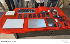 02 लैपटॉप, 01 टैब, 07 मोबाइल, मोटरसाइकिल सहित लगभग 05 लाख 50 हजार रुपये की जप्ती।