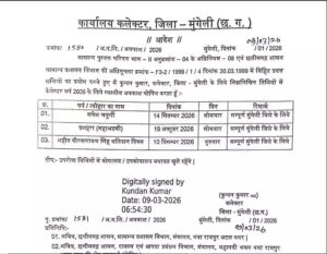 मुंगेली। जिले के कलेक्टर कुन्दन कुमार ने तीन स्थानीय छुट्टी घोषित की हैं। यह अवकाश गणेश चतुर्थी 14 सितंबर, दशहरा 19 अक्टूबर और शहीद बीरनारायण सिंह बलिदान दिवस पर रहेगा। स्थानीय अवकाश के दौरान जिले के स्कूल, काॅलेज और सरकारी दफ्तर बंद रहेंगे। साथ ही इन तिथियों में कोषालय, उपकोषालय खुले रहेंगे।
