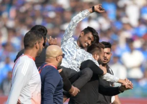 सोशल मीडिया पर वायरल हो रहा है जहां सुरक्षाकर्मी युवक को कंधे पर उठाकर मैदान से बाहर ले जा रहे हैं, जबकि स्टेडियम में मौजूद दर्शक इस सारी घटना को शोर और हंसी के बीच देख रहे थे।