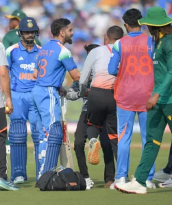 रायपुर। छत्तीसगढ़ की राजधानी रायपुर में टीम इंडिया और साउथ अफ्रीका मैच के दौरान ही एक ऐसा पल भी नजर आया जब एक फैन विराट कोहली से मिलने सारी सीमाओं को तोड़ते हुए उनके पास पहुंच गया। दरअसल भारतीय पारी के दौरान ड्रिंक्स ब्रेक में एक युवक अचानक सुरक्षा घेरे को तोड़कर मैदान में घुस आया और विराट कोहली के पैर छूए। हालांकिस सुरक्षा कर्मियों ने तुरंत कार्रवाई करते हुए उसे मौके पर ही पकड़ लिया। अब यह अपडेट सामने आया है कि पुलिस ने युवक को गिरफ्तार कर लिया है।