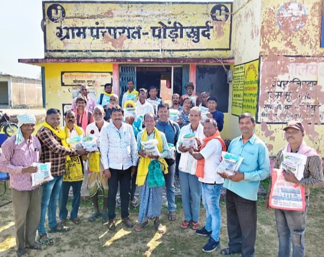 कोरबा//विकासखण्ड पोड़ी उपरोड़ा के ग्राम पंचायत पोड़ीखुर्द में शुक्रवार 8 नवम्बर को कृषि विभाग ने क्षेत्रीय जनप्रतिनिधियों की उपस्थिति में दर्जनों किसानों को निशुल्क मिनी सरसो का बीज वितरण किया। यह वितरण पंचायत कार्यालय भवन में दोपहर को किया गया। योजना के तहत प्रति एकड़ दो किलो बीज उपलब्ध कराया गया तथा इसका लाभ उठाने के लिए पंजीकृत किसानों को अपने खेतों के इंतखाब, आधार कार्ड और मोबाइल नंबर देना अनिवार्य बताया गया। कृषि विभाग ने स्पष्ट किया है कि बिना पंजीकरण वाले किसान इस निशुल्क योजना से वंचित रह जाएंगे।