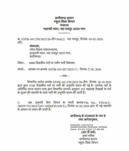 CG सरकारी नौकरी का खुला पिटारा : इतने हजार शिक्षक भर्ती की मिली अनुमति, स्कूल शिक्षा विभाग ने जारी किया आदेश……
