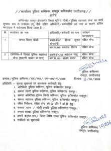 CG Police Transfer ब्रेकिंग : रायपुर कमिश्नरेट में कई पुलिसकर्मियों का हुआ तबादला, कमिश्नर ने जारी किया आदेश, देखें लिस्ट…..
