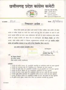 CG Political ब्रेकिंग : कांग्रेस प्रवक्ता को पार्टी ने इतने साल के लिए किया निष्कासित, इस वजह से दिखाया बाहर का रास्ता, देखें आदेश….