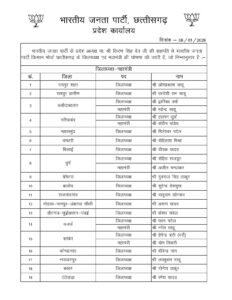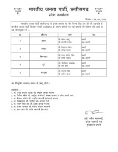 CG Politics : छत्तीसगढ़ भाजपा इकाई में बड़ी नियुक्तियां, प्रदेश से जिला स्तर तक पदाधिकारियों की हुई घोषणा, देखिए लिस्ट……
