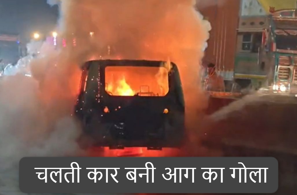CG – बीच सड़क पर कार बनी आग का गोला, 6 लोगों थे सवार, सभी ने ऐसे बचाई अपनी जान……