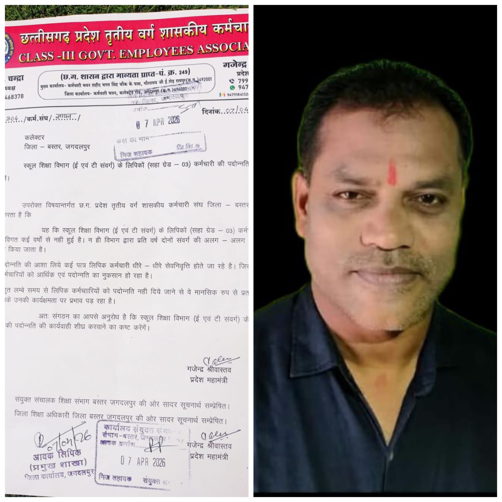 श्रीवास्तव ने आगे बताया कि पदोन्नति की आशा लिए कई पात्र कर्मचारी धीरे-धीरे सेवानिवृत्ति होते जा रहे हैं। जिस कारण लिपिकों को आर्थिक एवं पदोन्नति का नुकसान हो रहा है और बहुत लंबे समय से लिपिक कर्मचारी को पदोन्नति नहीं दिए जाने से वह मानसिक रूप से प्रताड़ित हो रहे हैं। जिससे उनके कार्य क्षमता पर भी प्रभाव पड़ रहा है। जबकि टी संवर्ग में पदोन्नति हेतु अधिक संख्या में पद भी रिक्त हैं। उन्होंने उक्त पत्र को संयुक्त संचालक शिक्षा संभाग बस्तर तथा जिला शिक्षा अधिकारी जिला बस्तर को भी भेज कर अभिलंब स्कूल शिक्षा विभाग के लिपिको सहायक ग्रेड 3 की पदोन्नति की अग्रिम कार्यवाही प्रारंभ करने को कहा है।