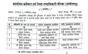 कोरबा। छत्तीसगढ़ के कोरबा जिले में चार SDM का ट्रांसफर किया गया है। कलेक्टर अजीत वसंत ने जिले के तीन डिप्टी कलेक्टर और एक संयुक्त कलेक्टर के पदस्थापना स्थल में बदलाव किया है। जिला मुख्यालय ने इसका आदेश जारी कर दिया है।