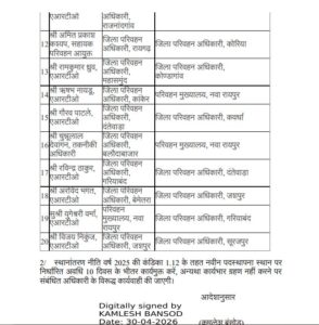 CG ट्रांसफ़र ब्रेकिंग : इस विभाग में अधिकारी-कर्मचारियों के हुए तबादले, राज्य सरकार ने जारी किया आदेश, देखें लिस्ट…..