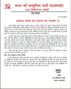 CG – हथियार छोड़ना चाहते हैं नक्सली : प्रेसनोट जारी कर किया ऐलान, सरकार से मांगी इतने दिन की मोहलत…..