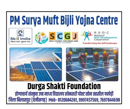 CG – क्या है प्रधानमंत्री सूर्य घर मुफ्त योजना आज से सोनसरी के द्रोणाचार्य विद्यालय में मिलेगा युवाओं कों निशुल्क प्रशिक्षण पढ़े पूरी ख़बर