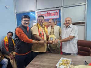 रायपुर :रायपुर प्रेस क्लब के नव निर्वाचित पदाधिकारी मोहन तिवारी, गौरव शर्मा, दिलीप साहू, भूपेश जांगड़े और दिनेश यदु का आज छत्तीसगढ़ श्रमजीवी पत्रकार संघ के प्रदेश कार्यालय में सम्मान एवं अभिनंदन किया गया इस अवसर पर प्रदेश अध्यक्ष अरविंद अवस्थी, प्रदेश संयोजक राजेश मिश्रा, कोषाध्यक्ष अनिल पवार, उपाध्यक्ष भरत योगी एवं रायपुर जिलाध्यक्ष राम साहू ने विजयी प्रत्याशियों को श्री रामचरित मानस भेंट कर उनका अभिनंदन किया साथ ही, प्रेस क्लब रायपुर एवं श्रमजीवी पत्रकार संघ के पदाधिकारियों द्वारा चुनाव संचालक श्री प्रकाश शर्मा, श्री प्रशांत शर्मा, श्री राम अवतार तिवारी, श्री बृजेश चौबे और श्री संदीप पौराणिक का भी अभिनंदन किया गया अभिनंदन समारोह में प्रदेश अध्यक्ष अरविंद अवस्थी ने कहा कि मोहन तिवारी श्रमजीवी पत्रकार संघ के जिलाध्यक्ष, संभाग अध्यक्ष और प्रदेश सचिव के रूप में कार्य कर चुके हैं तथा वर्तमान में प्रदेश उपाध्यक्ष हैं। उन्होंने कहा कि मोहन तिवारी का अनुभव पत्रकारों के हित में निरंतर संघर्ष का प्रतीक है और उनके नेतृत्व से पत्रकार जगत को लाभ मिलेगा इस अवसर पर श्री प्रकाश शर्मा, श्री राम अवतार तिवारी, श्री बृजेश चौबे, श्री संदीप पौराणिक और श्री राजेश मिश्रा ने भी अपने विचार व्यक्त किए नव निर्वाचित अध्यक्ष मोहन तिवारी और महासचिव गौरव शर्मा ने पत्रकार हित में किए गए सभी वादों को पूरा करने का संकल्प लिया कार्यक्रम का संचालन राम साहू ने किया तथा अंत में आभार अनिल पवार ने व्यक्त किया