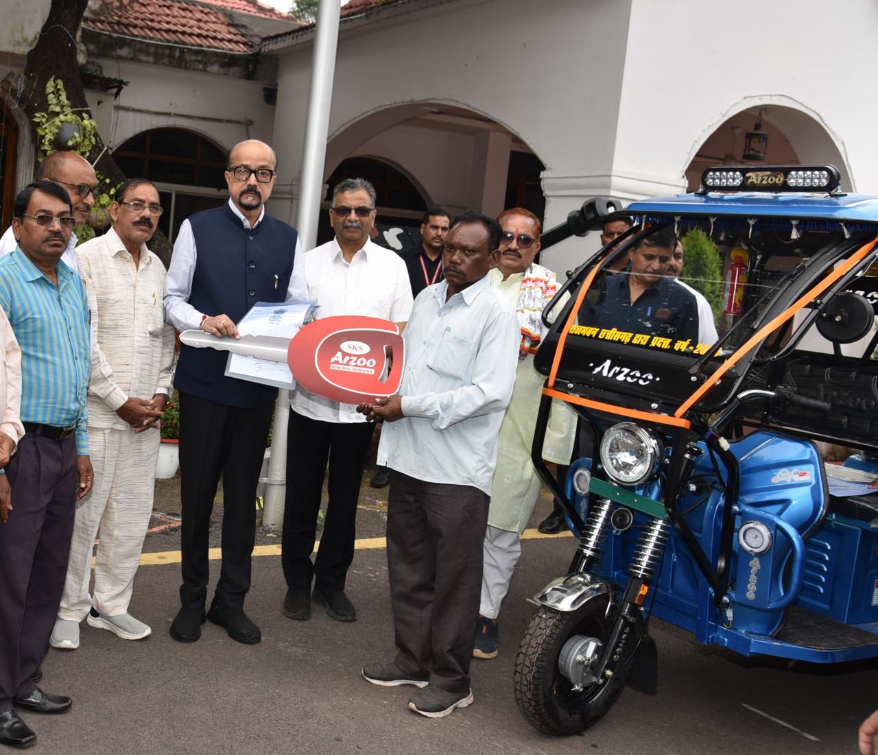 रायपुर: राज्यपाल श्री रमेन डेका ने आज राजभवन में सरस्वती शिक्षा संस्थान छत्तीसगढ़ रायपुर को चार ई-रिक्शे प्रदान किए। उन्होंने राजभवन परिसर में आयोजित कार्यक्रम में अपने स्वेच्छानुदान मद से चार ई-रिक्शे की चाबी वाहन चालकों को सौंपी और हरी झंडी दिखाकर वाहनों को रवाना किया। इन वाहनों का उपयोग विभिन्न सरस्वती शिक्षा संस्थानों में किया जाएगा। इस अवसर पर डॉ. पुर्णेन्द्रु सक्सेना सहित संस्थान के पदाधिकारी उपस्थित थे।