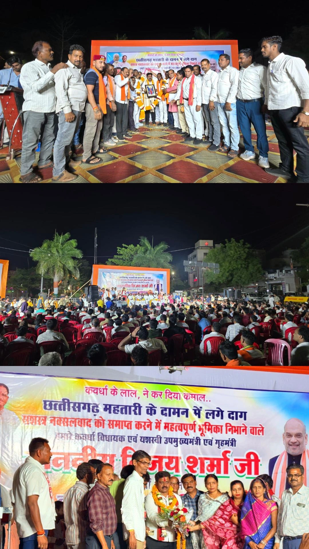 चार दशक का लाल आतंक समाप्त, नक्सल मुक्त छत्तीसगढ़ पर कवर्धा में गृह मंत्री विजय शर्मा का ऐतिहासिक अभिनंदन। हजारों की संख्या में जुटे नागरिक किया स्वागत अभिनंदन।