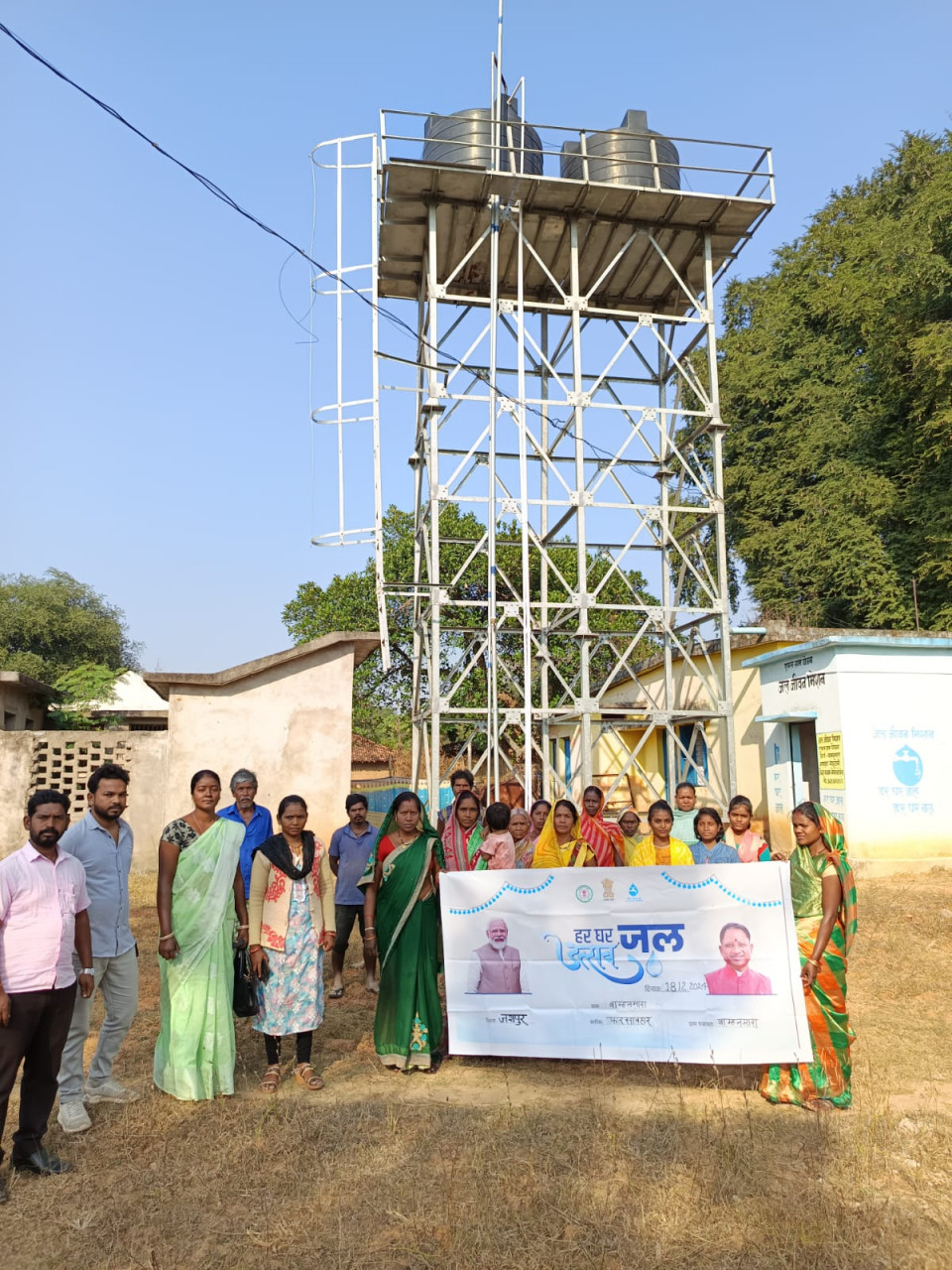 रायपुर: सभी घरों में व्यक्तिगत घरेलू नल कनेक्शन के माध्यम से सुरक्षित और पर्याप्त पेयजल उपलब्ध कराना है। स्कूलों, आंगनवाड़ी केंद्रों, ग्राम पंचायत भवनों, स्वास्थ्य केंद्रोंऔर सामुदायिक भवनों को कार्यात्मक नल कनेक्शन प्रदान करना है। जिला मुख्यालय जशपुर से लगभग 70 कि.मी. की दूरी पर स्थित सुदूर वनांचल के गारीघाट पंचायत का राजस्व ग्राम मुण्डाडीह में जल जीवन मिशन के अंतर्गत तीन उच्च स्तरीय जलागार स्थापित कर कुल 92 क्रियाशील घरेलू नल कनेक्शन के माध्यम से संपूर्ण ग्रामवासियों को शुध्द पेय जल उपलब्ध कराया जा रहा है। मुख्यमंत्री श्री विष्णु देव साय ने जल जीवन मिशन योजना का बेहतर क्रियान्वयन करने के निर्देश दिए हैं।