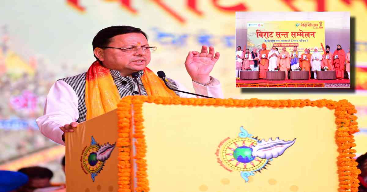 सीएम धामी ने अपने एक्स हैंडल पर लिखा कि आज कुरुक्षेत्र, हरियाणा में अंतर्राष्ट्रीय गीता महोत्सव के अंतर्गत आयोजित विराट संत सम्मेलन में पूज्य साधु-संतों की गरिमामयी उपस्थिति में सम्मिलित होकर उनका आशीर्वाद प्राप्त किया। इस पावन अवसर पर पूज्य साधु-संतों को वर्ष 2027 में हरिद्वार में होने वाले भव्य कुंभ महोत्सव के लिए निमंत्रण भी दिया। उन्होंने गीता के संदेश को जन-जन तक पहुँचाने के लिए स्वामी ज्ञानानंद और हरियाणा सरकार के प्रति अपनी कृतज्ञता प्रकट की।