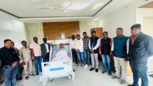 रायपुर रामकृष्ण केयर अस्पताल में भर्ती लुण्ड्रा विधायक प्रबोध मिंज से मिलने पहुंचे कुन्नी और दरिमा भाजपा मंडल के पदाधिकारी।