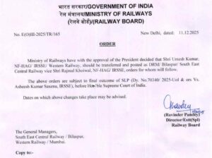CG – रेल हादसे पर बड़ी कार्रवाई : हटाए गए DRM बिलासपुर, इस अधिकारी को बनाया गया नया डीआरएम, अन्य अधिकारी पर भी जल्द गिर सकती है गाज…..
