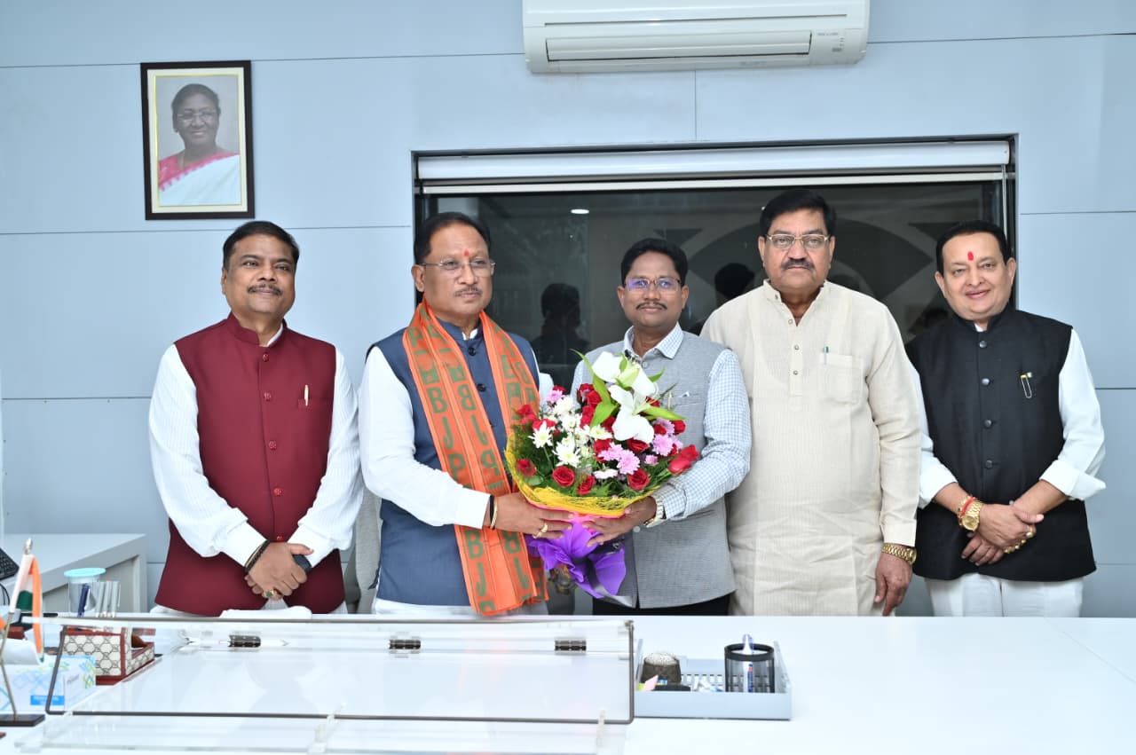 रायपुर। मंत्रालय में मुख्यमंत्री विष्णुदेव साय से सौजन्य भेंट के दौरान राज्य अनुसूचित जनजाति आयोग के नव-नियुक्त अध्यक्ष रूप सिंह मंडावी ने अपनी नियुक्ति पर हार्दिक आभार व्यक्त किया। इस अवसर पर वन एवं जलवायु, परिवहन एवं सहकारिता मंत्री केदार कश्यप, खाद्य एवं उपभोक्ता संरक्षण मंत्री दयालदास बघेल एवं बसना के विधायक संपत अग्रवाल भी उपस्थित रहे।