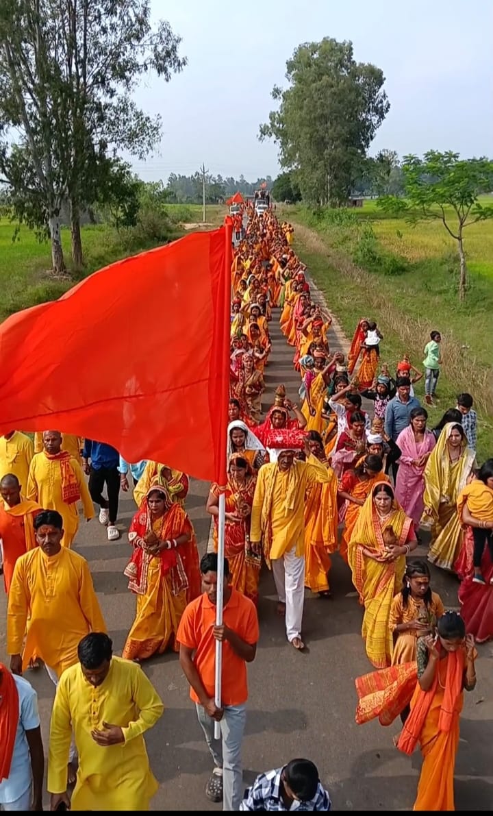 सूरजपुर: सूरजपुर जिले के रामनगर में इस वर्ष भी भक्ति और श्रद्धा का संगम देखने को मिला। यहां शिवपुराण महापुराण कथा का आयोजन श्रद्धापूर्वक किया जा रहा है। आयोजन के तहत शुक्रवार, 10 अक्टूबर को भव्य कलश यात्रा निकाली गई, जिसमें सैकड़ों श्रद्धालु महिलाओं और युवाओं ने भाग लिया। डीजे, नगाड़े और भक्ति गीतों की मधुर ध्वनियों से रामनगर, रामपुर रूनियाडीह, सरस्वतीपुर की गालियां की गलियां गुंजायमान हो उठीं।