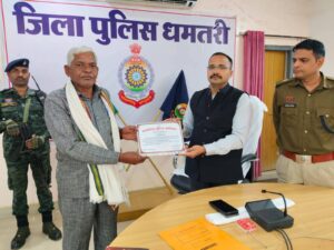 धमतरी पुलिस द्वारा ऐसे साहसी एवं समाजहित में कार्य करने वाले नागरिकों को सम्मानित कर जनमानस में सकारात्मक संदेश देने का निरंतर प्रयास किया जा रहा है।