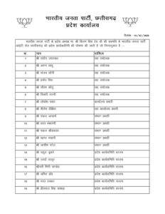 CG – BJP की आईटी सेल की प्रदेश कार्यकारिणी घोषित, जानिए किसे कहां की मिली जिम्मेदारी, देखिए पूरी लिस्ट……
