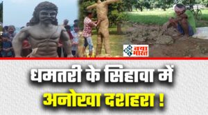 वक्त बदला लेकिन धमतरी के सिहावा गाॅव मे दशहरा त्योहार का मनाने के तरिके नही बदले और इस वनवासी गाॅव के अनोखे दस्तूर को देखने हर साल दूर दूर से आऐ लोगो का हुजूम उमड पडता है…बुराई पर अच्छाई की जीत का पर्व यॅहा विजयादशमी के दिन नही बल्कि एकादशी को धूमधाम से मनाया जाता है…इसकी और एक खासीयत है कि इस गाॅव मे बुराई के प्रतिक रुप मे रावन का पुतला नही बल्कि सहस्त्रबाहु रावन की नग्न मुर्ति होती है…जिसके पुजारी के व्दारा वध किऐ जाने के बाद श्रृद्धालु नोचनोच कर मुर्ति की पवित्र मिटटी को अपने घर ले जाते है और एक दुसरे को तिलक लगाकर जीत की खुशीयाॅ मनाते है…ये नजारा है धमतरी से करीब 70 किमी दूर सिहावा के सिहावा गाॅव का जॅहा का दशहरा देखने सुबह से ही लोगो को जमावडा लगना शुरु हो जाता है,क्योकि लोग गाॅव की उस अनोखी परम्परा का गवाह बनना चाहते है जो पीढी दर पीढी चले आ रही है और आज भी कायम है…एकादशी के दिन मानऐ जाने वाले इस गाॅव के दशहरे मे बुराई के रुप मे सहस्त्रबाहु रावन का वध होता है.जिसकी नग्नमुर्ति को मन्दिर का पुजारी मंत्रोवार के बाद खडग से छत विछत कर देता है …बाद इसके मुर्ति को नोचने लोगो को हुजूम उमड पडता है और…पवित्र मिटटी के लिऐ पाने होड मच जाती है,विधीविधान से किऐ जाने वाले इस धार्मिक उत्सव के बारे मे मान्यता है कि यूगो यूगो पहले वासना से ग्रसित से इस असुर का वध माता चण्डिका ने अपने खडग से किया था…तब से ये परम्परा चली आ रही है और इलाके के लोग आज भी आस्था की इस डोर को थामे चल रहे है,वैसे पुरातन काल से ही इलाके की पहचान बन चूके इस दशहरे को देखने लोग दूर दूर से आते है,पहले गाॅव के बाहर शितला माता को साधने के बाद चाॅदमारी होती है फिर पुजा अराधना का दौर सांझ ढलने के बाद ही होता है