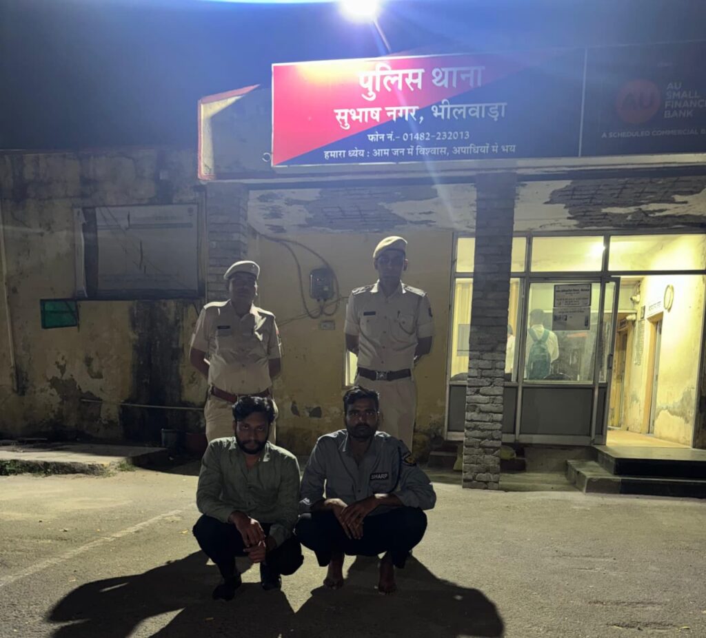 भीलवाड़ा। शहर के सुभाषनगर थाना पुलिस की बड़ी कार्यवाही कपासन में पदस्थापित आरएएस अफसर राजेश सुवालका के पिताजी के रमा विहार स्थित घर में 3 करोड रुपए की फिरौती मांगने की चिट्ठी रखने वाले दो आरोपितों को किया गिरफ्तार। सुभाष नगर थाना अधिकारी शिवराज गुर्जर ने बताया कि कपासन में पदस्थापित आरएएस अधिकारी राजेश सुवालका के पिता रामकिशन सुवालका भीलवाड़ा में रमा विहार कॉलोनी में रहते है। प्रार्थी ने दिनांक 15 अक्टूबर को उपस्थित थाना हो एक रिपोर्टपेश अकड़ी की दिन में अज्ञात युवक घर के अंदर गेट के नीचे से पीले लिफाफे में छोड़कर चले गए जिसमें उन्होंने 3 करोड रुपए की राशि की डिमांड करी एवं राशि ना देने पर उनके पुत्र को गोली मारने की धमकी दी जिस पर तुरंत उन्होंने सुभाष नगर थाने में मामला दर्ज कराया पुलिस द्वारा करीब 100 से अधिक सीसीटीवी केमरो की जांच की गई एवं तकनीकी सहायता से एवं आसूचना संकलन कर व अन्य तकनीकी उपयोग करते हुए दो आरोपियों को गिरफ्तार किया है। वहीं इस मामले में लिप्त एक आरोपी की गिरफ्तारी शीघ्र होगी।