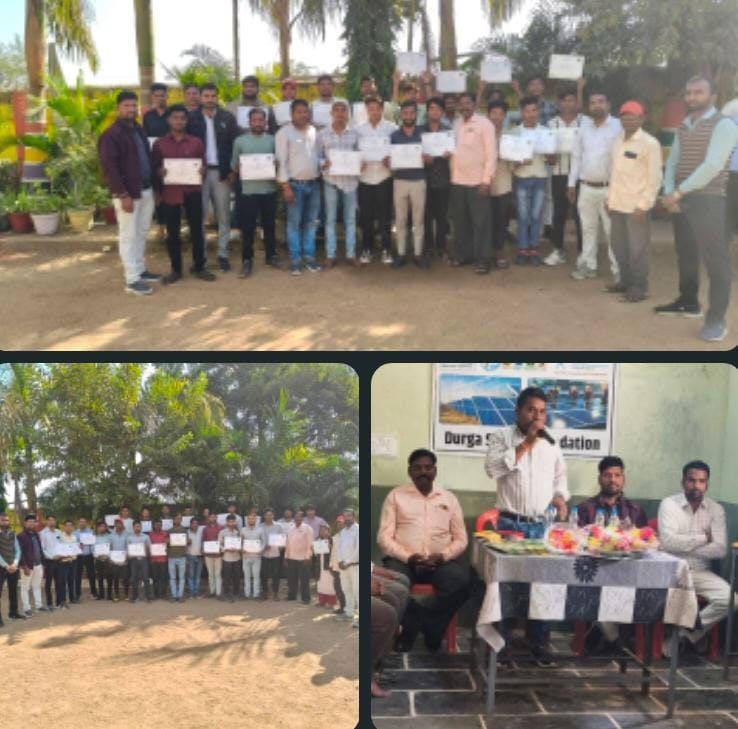 जोंधरा//पीएम सूर्य घर मुफ्त बिजली योजना के अंतर्गत छत्तीसगढ़ जिला बिलासपुर के गांव सोनसरी में द्रोणाचार्य संस्कृत उच्चतर माध्यमिक विद्यालय में दुर्गा शक्ति फाउंडेशन के द्वारा संचालित कोर्स अंडर सोलर आर पी एल – सोलर पीवी इंस्टालेशन हेल्पर का प्रशिक्षण कराने के उपरांत सर्टिफिकेट वितरण मुख्य अतिथि खिलावन पटेल सभापति प्रतिनिधि निशक्त एवं कल्याण समिति जिला पंचायत बिलासपुर और विशिष्ट अतिथि तिलकराम मिरी सरपंच पति ग्राम पंचायत सोनसरी राम पटेल पंच के शुभ करकमलों द्वारा किया गया। कार्यक्रम के मुख्य अतिथि खिलावन पटेल द्वारा सभी प्रशिक्षार्थियों को इस सर्टिफिकेट के महत्व एवं उपयोगिता के बारे में बताया गया ,सर्टिफिकेट के माध्यम से छत्तीसगढ़ के साथ अन्य राज्यों में भी रोजगार प्राप्त किया जा सकता है कुंजराम मरार प्राचार्य ने बताया कि भारत में सोलर ऊर्जा उद्योग तेज़ी से बढ़ रहा है, जिसके कारण तकनीशियन, इंस्टॉलेशन इंजीनियर, मेंटेनेंस एक्सपर्ट, प्रोजेक्ट सुपरवाइज़र, सेल्स एवं सर्विस प्रोफेशनल्स की मांग लगातार बढ़ रही है। यह प्रशिक्षण कार्यक्रम युवाओं को इन सभी क्षेत्रों में व्यावहारिक क्षमता प्रदान करेगा। सोलर इंस्टॉलेशन से रोजगार के अवसर,सोलर टेक्नीशियन,इंस्टॉलेशन इंजीनियर,प्रोजेक्ट सुपरवाइज़र,ओ एन्ड एम (ऑपरेशन्स एन्ड मेंटेनेंस) एक्सपर्ट,सोलर डिजाइनर,सर्वे इंजीनियर बन सकेंगे। इस अवसर पर ,ट्रेनर देवेंद्र सिंह,सच्चिदानंद, फिरती राम पैकरा, विजय कुमार किरण भुनेश्वरी सत्यवती,कु गीता, दुर्गेश्वरी साव नीतू कुमारी शिवकुमार लख राम, ओंकार प्रसाद उपस्थित रहे