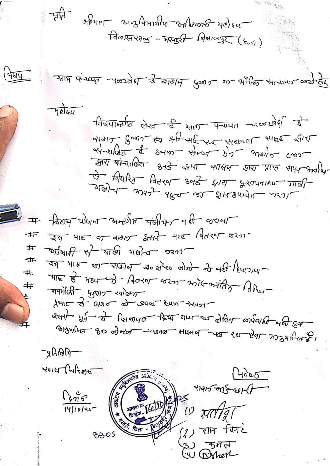 CG – उचित मूल्य दुकान चकरबेढ़ा में अनियमित्ता कों लेकर ग्रामीणों नें मस्तूरी एसडीएम से किया लिखित शिकायत पढ़े पूरी ख़बर